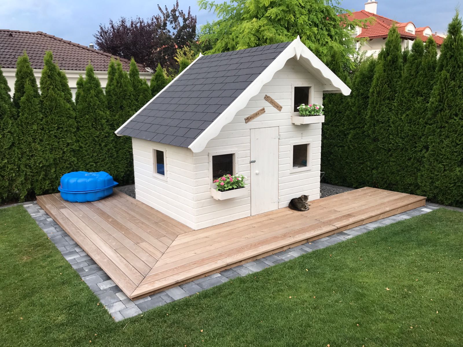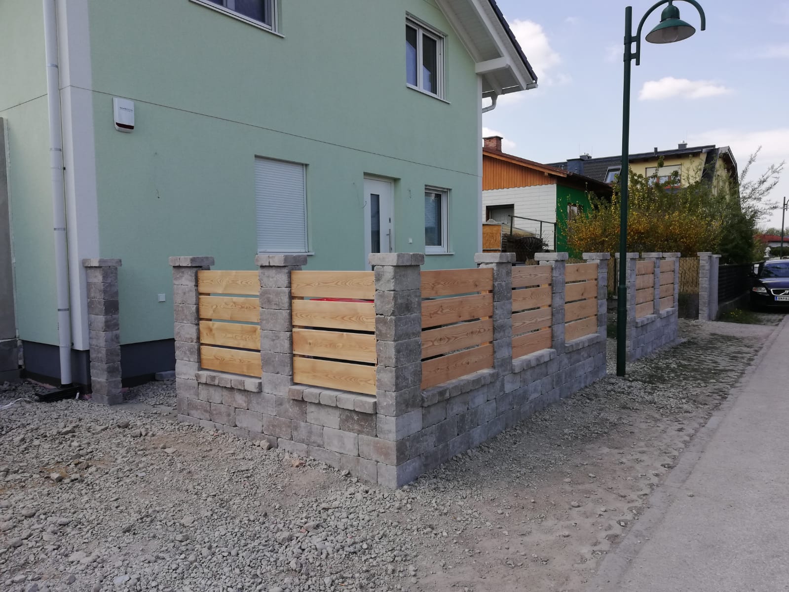 Materialien: Naturstein, Ipenholz, Lärchenholz, Rollrasen, Edelsplitt, Cortenstahl, Rindenmulch, ...